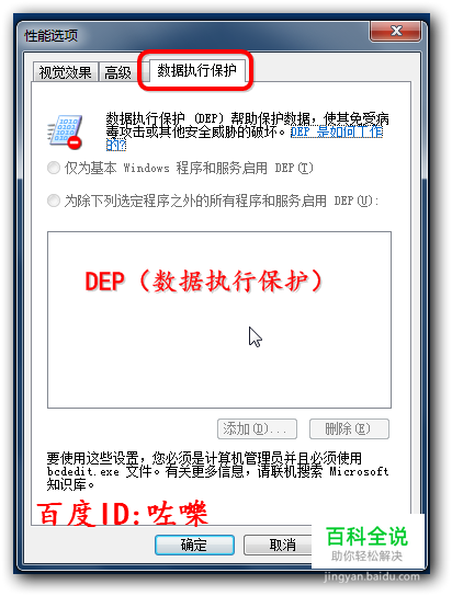 设置好之后 (添加到列表的应用排除例外,其他第三方程序非windows)会进行一般的DEP保护