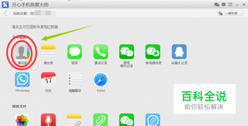 接着在数据项选择界面找到【通讯录】图标进行点击,系统就会进入自动识别和分析阶段了。