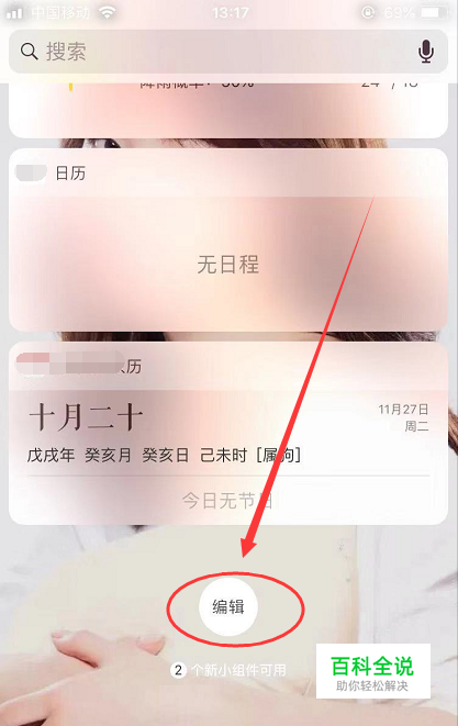 首先打开手机小组件页面,也就是滑开主页面的左边页面,在小组件页面底部有个 编辑,如下图
