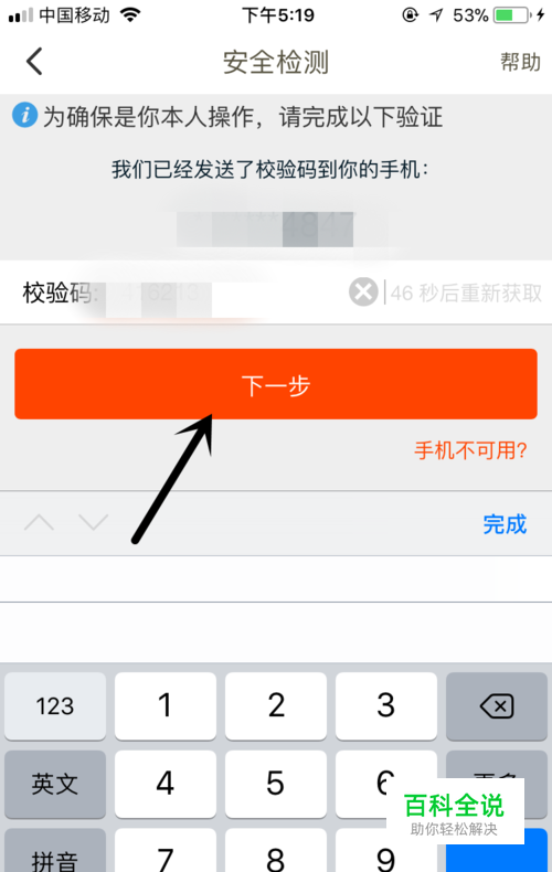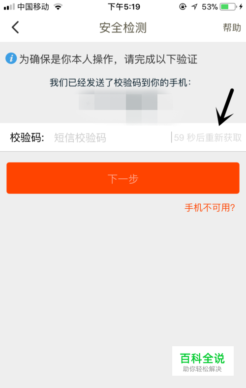不到一分钟,手机短信收到了验证码,将验证码输入款框里,再点击确定,就可以了。