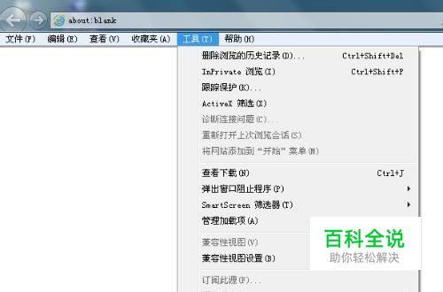 打开ie浏览器,依次选“工具”--"internet选项",打开选项窗口