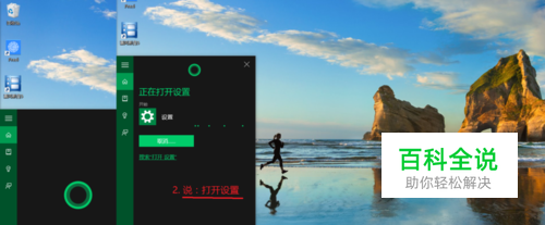 点击桌面左下角微软徽标,点击设置,进入系统设置界面(语音指令法:点击任务栏上的话筒图标,然后对着计算机话筒说“打开设置”,系统识别成功后自动进入设置界面)