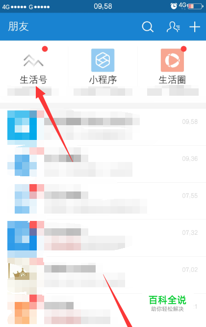 首先,我们要准备两台手机并登录两个不同的账号,且两个账号均需要开通商家服务; 开通商家服务方法,点朋友-生活号。