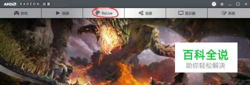 打开AMD显卡驱动的RADEN设置!点击红圈的‘ReLive’