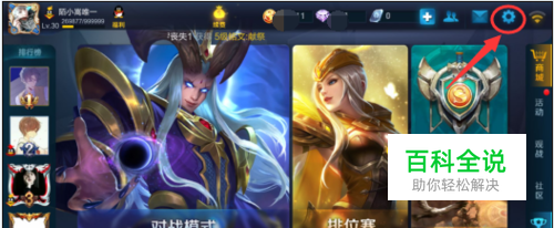 首先我们登录自己的王者荣耀,登陆后在右上角找到设置如图: