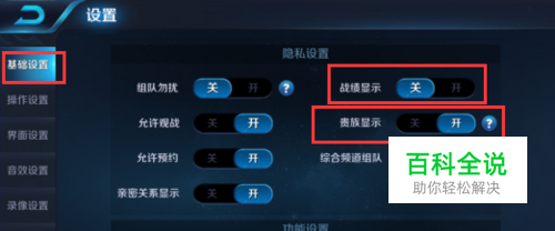 点开在设置以后知道基本设置,滑动屏幕下拉找到战绩显示开关,如图:
