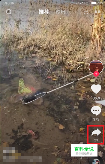当然,抖音中的更多音乐是别人原创的,在其他平台上根本搜索不到,这个在抖音上是下载不了的,但可以提取出音乐,打开想要下载音乐的视频,并在播放界面中点击【转发】。