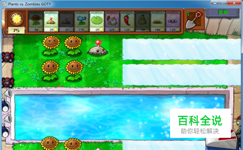 中间2排先种向日葵,最后一排留给寒冰射手,第一排种土豆,这里一定要优先种土豆,有空就种,也可以用倭瓜进行补充,基本保证每列都可以阻挡机车。