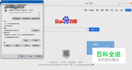 在打开的界面中,勾选“临时Internet文件和网站文件”、“Cookie和网站数据”、“历史记录”三项,并点击“删除”按钮,删除缓存完成后,关闭浏览器。