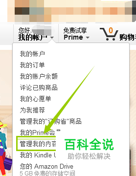 点击“我的账户”,下拉会出现“管理我的设备和内容”,点击它,进入下一步。