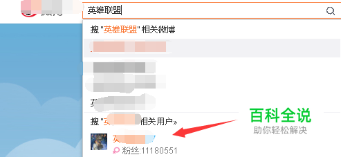 进入微博,在微博输入英雄联盟来搜索,选择英雄联盟官方账号,点击。