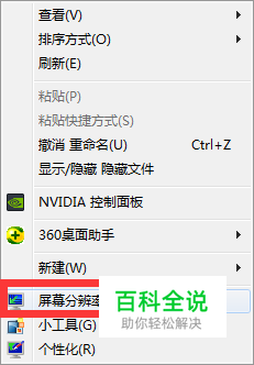 右击点击桌面空白处 在弹出的对话框中选择【屏幕分辨率】