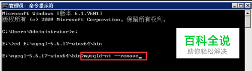手动卸载MySQL服务。 进入dos窗口,通过目录切换,进入到mysql\bin目录下 c:mysql\bin\>mysqld-nt --remove