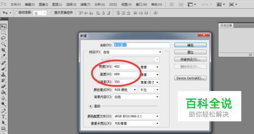 首先打开PS,新建一个文档,文档大小按所需要的尺寸规格填写, 482像素(宽)×689像素(高),分辨率350dpi;其它按默认不用改,调好之后点击“确定”。相片尺寸不用改,按默认的就可以(打印时会裁剪),