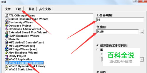 点击 新建工程下的 WIN32 console Application,同时在工程名称那填写名称, 注意:最好不要填中文(英文数字均可),可以设置下文件位置,最后点击确定,之后出来的直接点确定即可。
