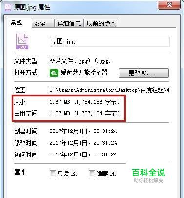 点击修改后的图片查看图片属性,可以看到修改后图片的大小334KB,而原图的大小1.67MB,可以看出图片的大小发生了改变。在图片属性中看到修改后的像素依然是1920x1440,像素未发生改变