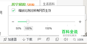 这时候如果想要对所有网页生效,就把“缩放比例对所有网页生效”前面的对勾打上,然后调整滑块位置到你想要的效果,或者你只想调整当前页面的比例的话,只用调整滑块位置就可以了