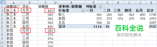 把“张三”改成“张三丰”, “一月”改成“元月”, 改变其中两个销售额。 改完后发现,数据透视表没有变化。 怎么办?