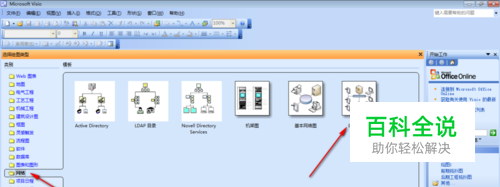 这里以一个简单地详细网络图为例。打开Microsoft Visio软件,在网络项选择点击“详细网络图”。