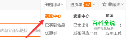 在弹出的下拉菜单中选择“买家中心”,如下图所示。