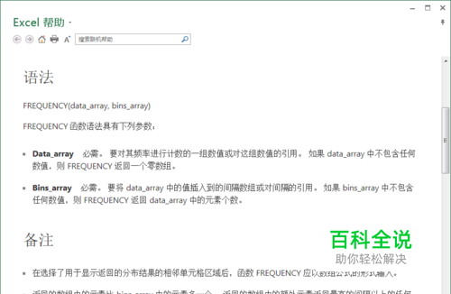 计算数值在某个区域内的出现频率,然后返回一个垂直数组,由于函数 FREQUENCY 返回一个数组,所以它必须以数组公式的形式输入。