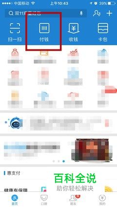 打开支付宝中的付钱码,让收银员扫码收钱。