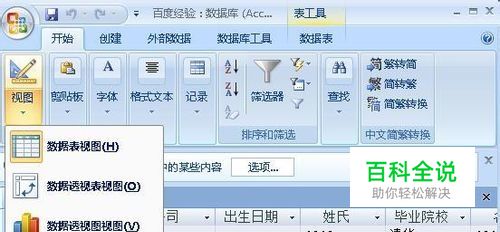 打开你要修改的数据表,然后点击菜单栏上的视图按钮,打开下拉菜单