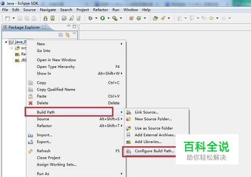 第二步右键项目,选择“Build Path------>Configure Build Path”,如下图所示:
