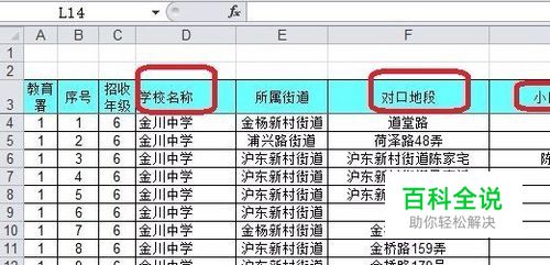 以生活中的实例来进行演示,我手上的excel是从网上拷贝出的校区信息,考虑到上学的可能性,小编只拷贝了上海浦东新区的所有初中学校。