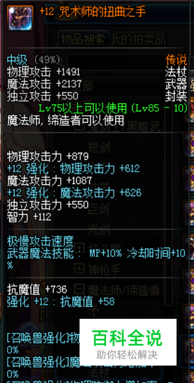 武器:咒术师的扭曲之手 (85传说武器) 增加召唤兽物理攻击30%,魔法攻击30%