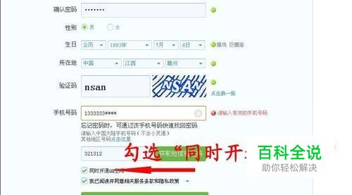 勾选“同时开通QQ空间”(也可以不勾选,后期可以开通)