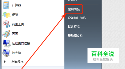 首先找到电脑的控制面板,并进入到控制面板中。 开始--->控制面板