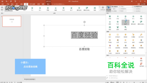 然后点击菜单中的动画,再点击添加动画,选择自己想要添加的动画