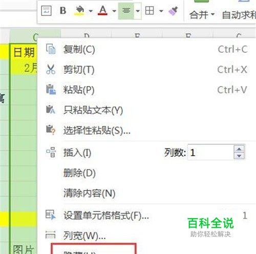 然后把鼠标放在不需要统计的列表最顶端,右击鼠标,然后点击“隐藏”