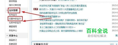 在店铺后台中找到宝贝管理模块,宝贝管理下面有个出售中的宝贝,点击出售中的宝贝