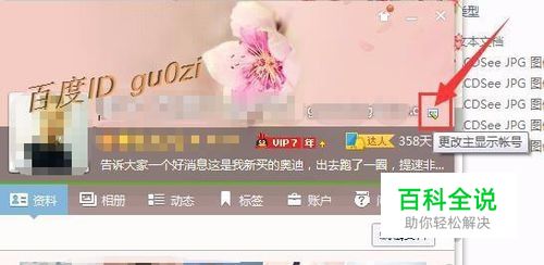 在打开的个人设置页面,注意右侧关闭按钮下方,有一个“更改显示帐号”的按钮 点击它