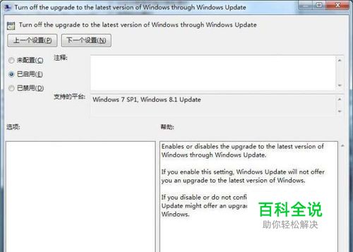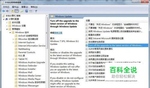 第3步:在右侧窗格中找到“Turn off the upgrade to the latest version of Windows through Windows Update”项,双击打开它,将其设置为“已启用”。