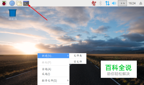 点击箭头上的终端,输入关机命令:【sudo shutdown -h now】,此时系统立刻关机。