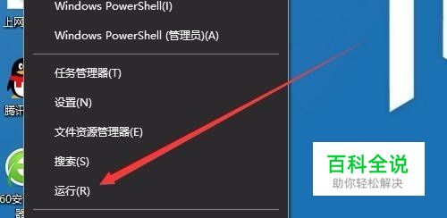 在Windows10系统桌面,右键点击桌面左下角的开始按钮,在弹出菜单中选择“运行”菜单项。