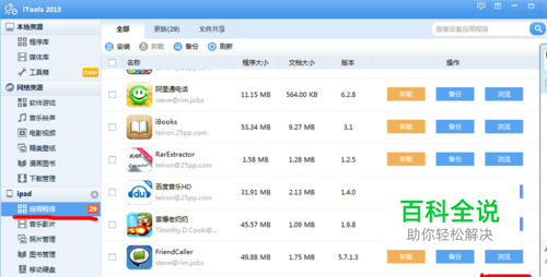 连上Pad或者Iphone之后,这时会出现以下的界面,看左边,点击应用程序,找到唱吧,点击“浏览”