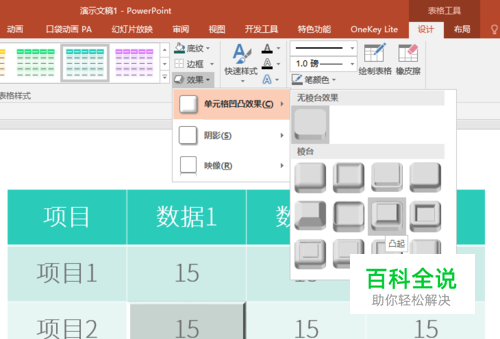为PPT表格的单元格设置立体凹凸效果,可以有效美化表格。