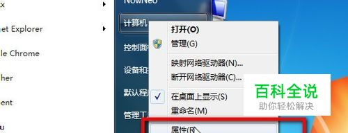 桌面没有的话,在开始菜单的计算机上右键菜单,属性打开