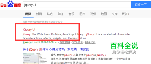 如何快速下载jquery-ui界面设计js包 手机开发使用界面设计开源的js包 用户用搜索引擎搜索jquery-ui,找到jquery-ui的官网