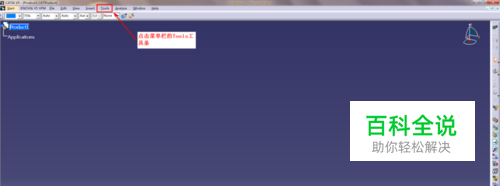 进入CATIA后,在界面左上角找到Tools工具条,单击菜单栏中的Tools工具条,显示出Tools工具条的下拉菜单。