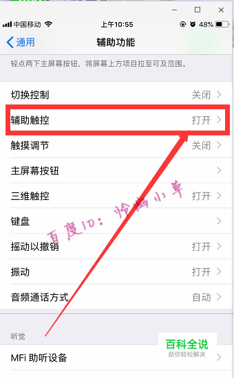 我们先进入“设置”把“辅助触控”功能打开,也就是调出苹果手机的悬浮球,具体方法可以参考这篇经验: