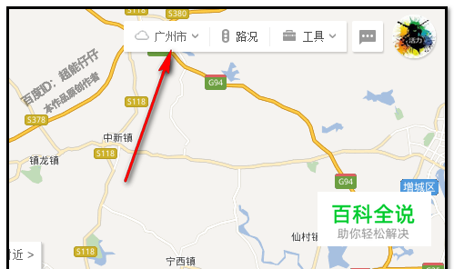 如果没有切换到你想要的城市,你想查的地点是在其它城市的,在“广州市”右侧的“V”点一下,弹出的各个城市中点选即可。
