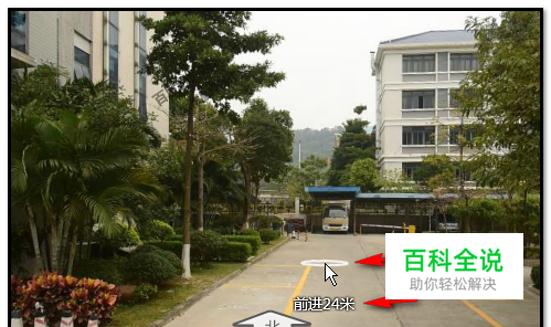 鼠标不点方向指示图的,直接用鼠标来控制也可以。鼠标向北方向移动。这里,在鼠标右下角,显示前进多少米。到达自己想要的位置,点击下,画面即会动起来,显出鼠标所点的那个画面。