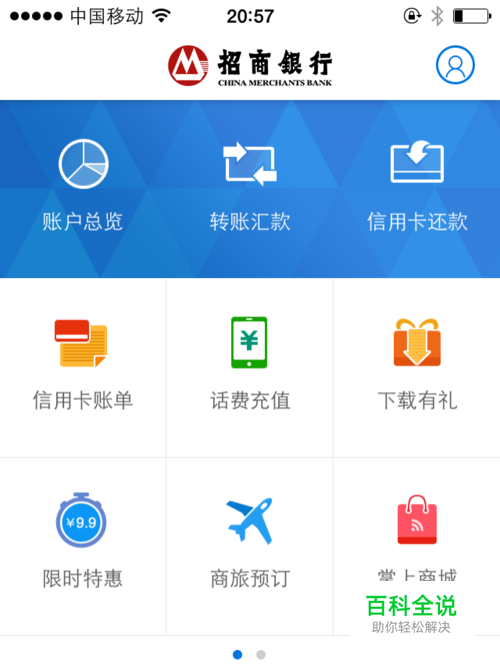 在这个APP中有很多其他功能如 查看信用卡账单、话费充值、下载有礼、限时特惠、商旅预定、掌上商城等功能 如图