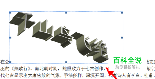 我么能看到艺术字周围有很多黑块,如图,我们可以拖动它变换艺术字的大小,位置。