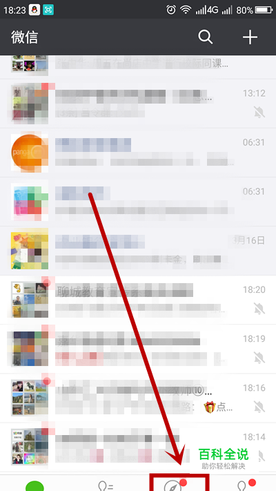 在微信首页点击“发现”